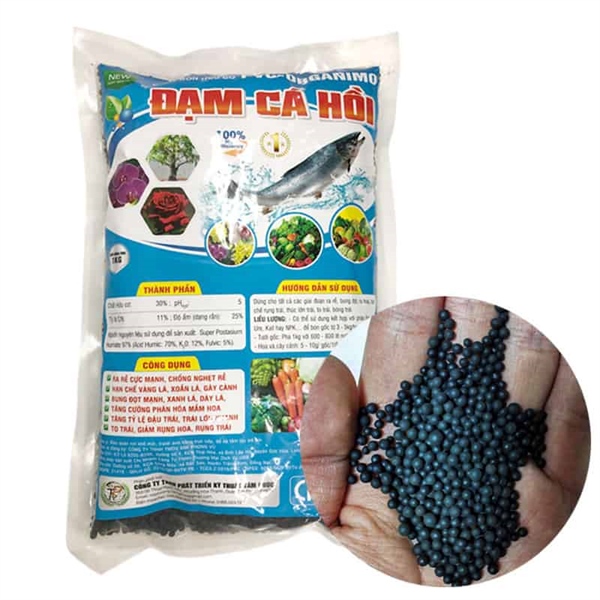 Phân bón Hữu cơ Đạm Cá Hồi siêu đậm đặc (ra rễ mạnh, hạn chế vàng lá, bụng đọt, giảm rụng hoa, rụng trái) - 1kg